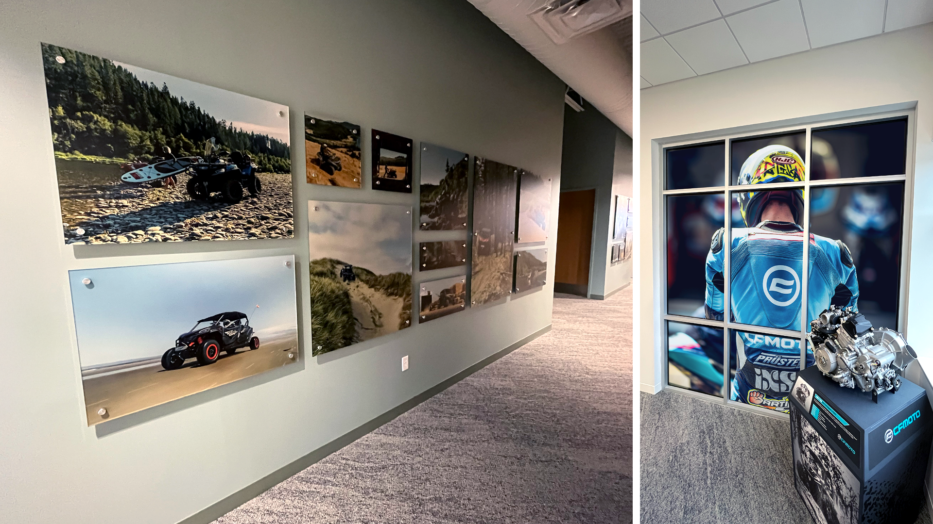 Eight years ago, CFMOTO was a little-known powersports brand struggling to connect with American riders. Today, CFMOTO offers nearly 20 off-road models, over a dozen motorcycles, and a full line of accessories, all supported by a nationwide network of 700+ dealerships. I developed internal branding for their new national headquarters in Plymouth, Minnesota. As well have provided art direction for numerous location shoots and event branding.